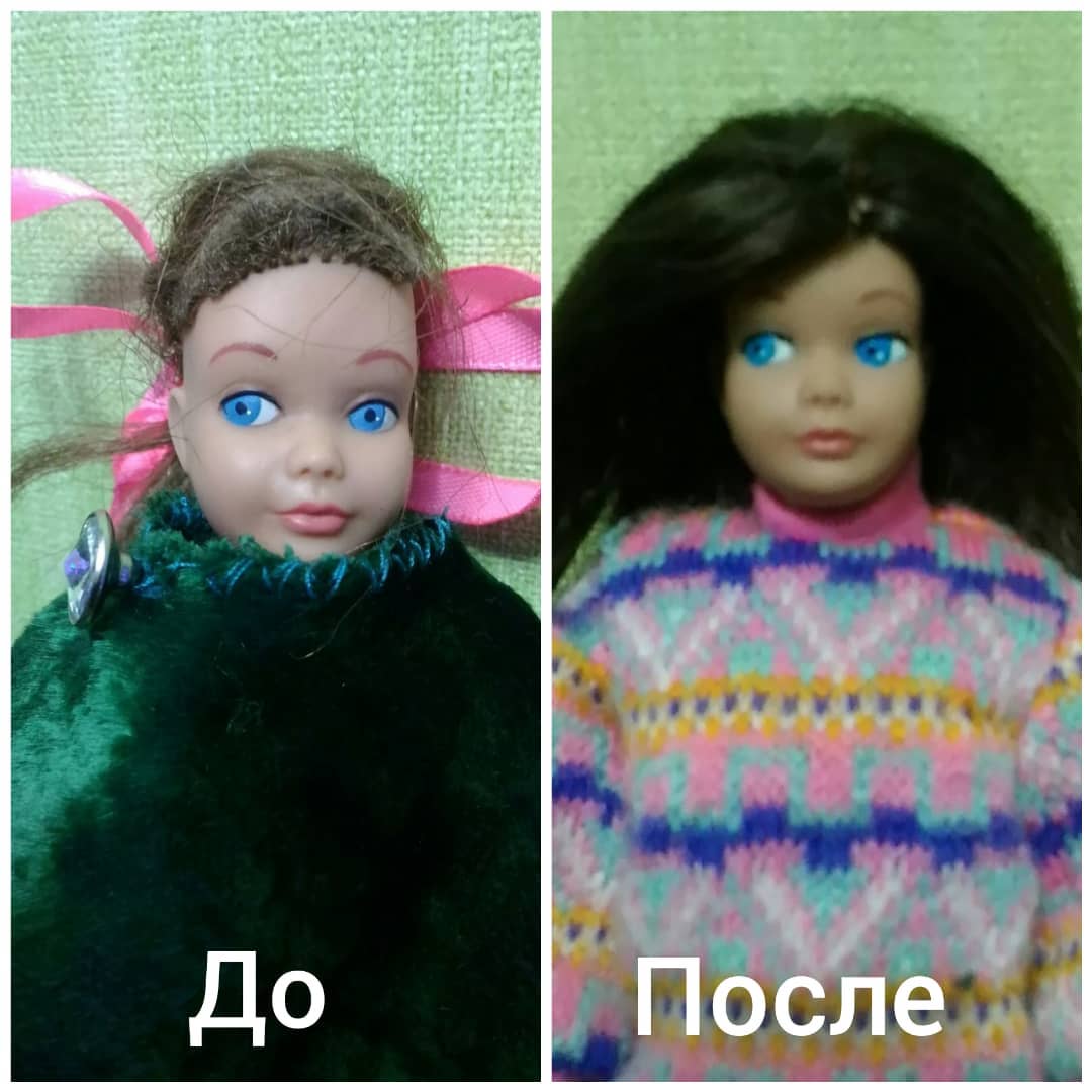 А в нашей кукле я сама дырочки делала, иначе в голове только по кругу волосы вставляли.