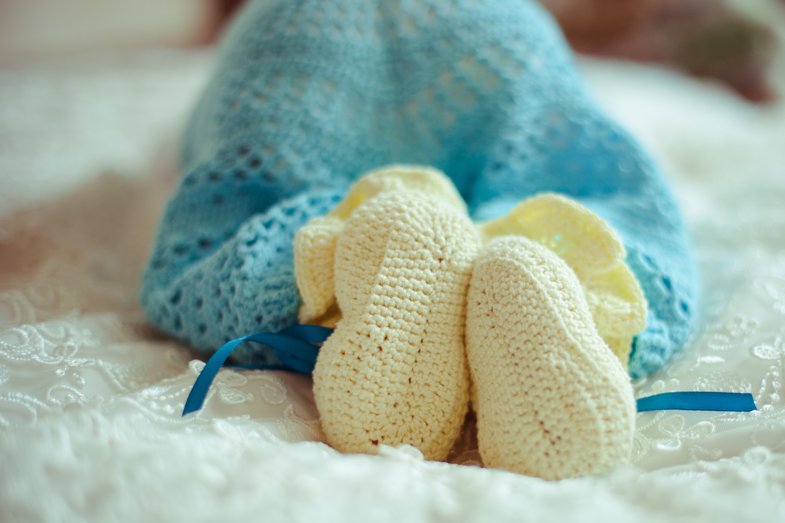 В первую беременность освоила крючок)) связала пинетки и полукомбинезон))