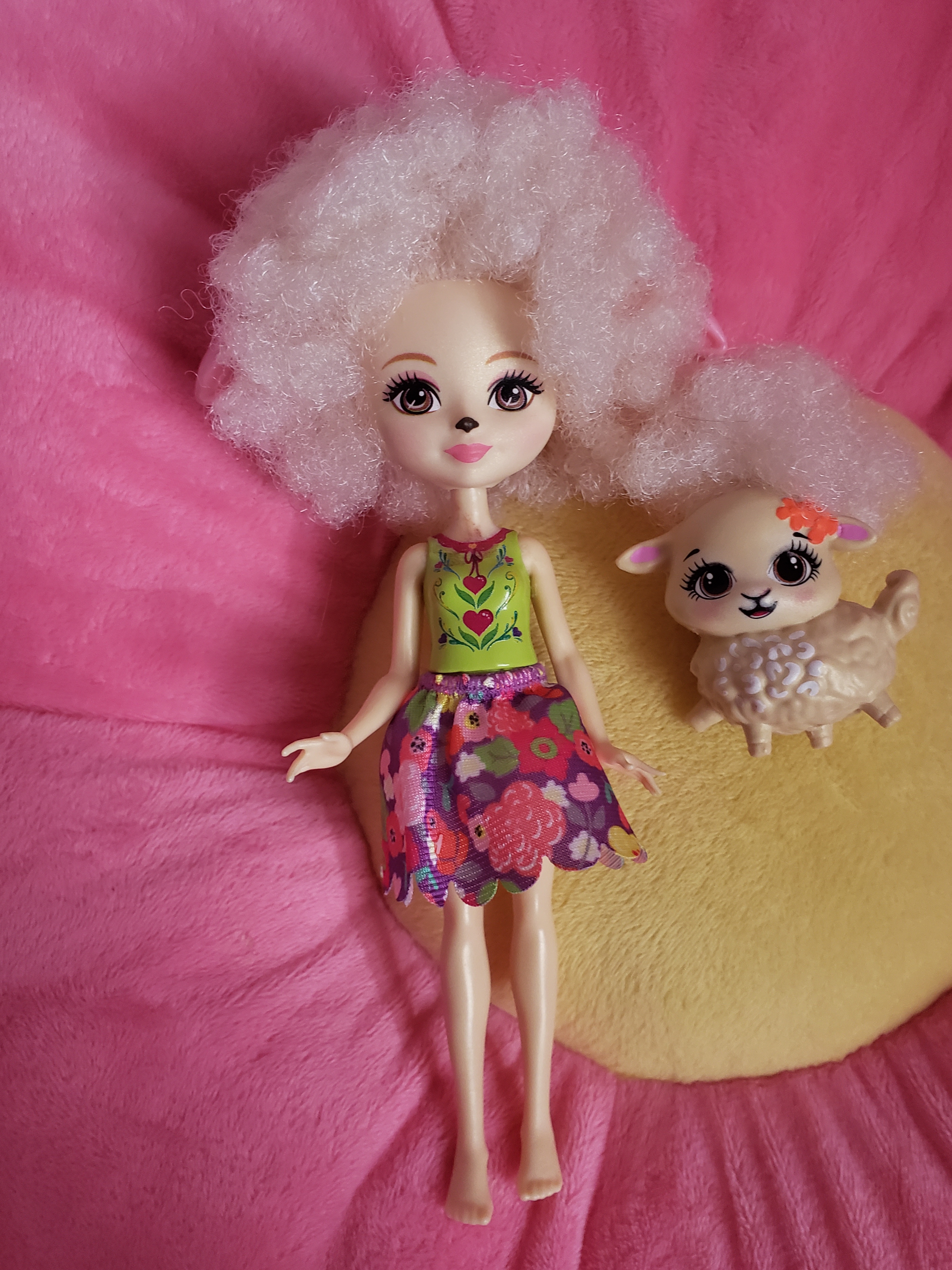 Жаль, что ноги не гнутся. Могли бы сделать, как у "старых" барби, на щелчки хотя бы, а то и не посадить толком. А у вас еще есть Овечка из Enchantimals, у нее что-нибудь гнется? Enchantimals в целом, по-моему, довольно симпатичные, для детей так точно.