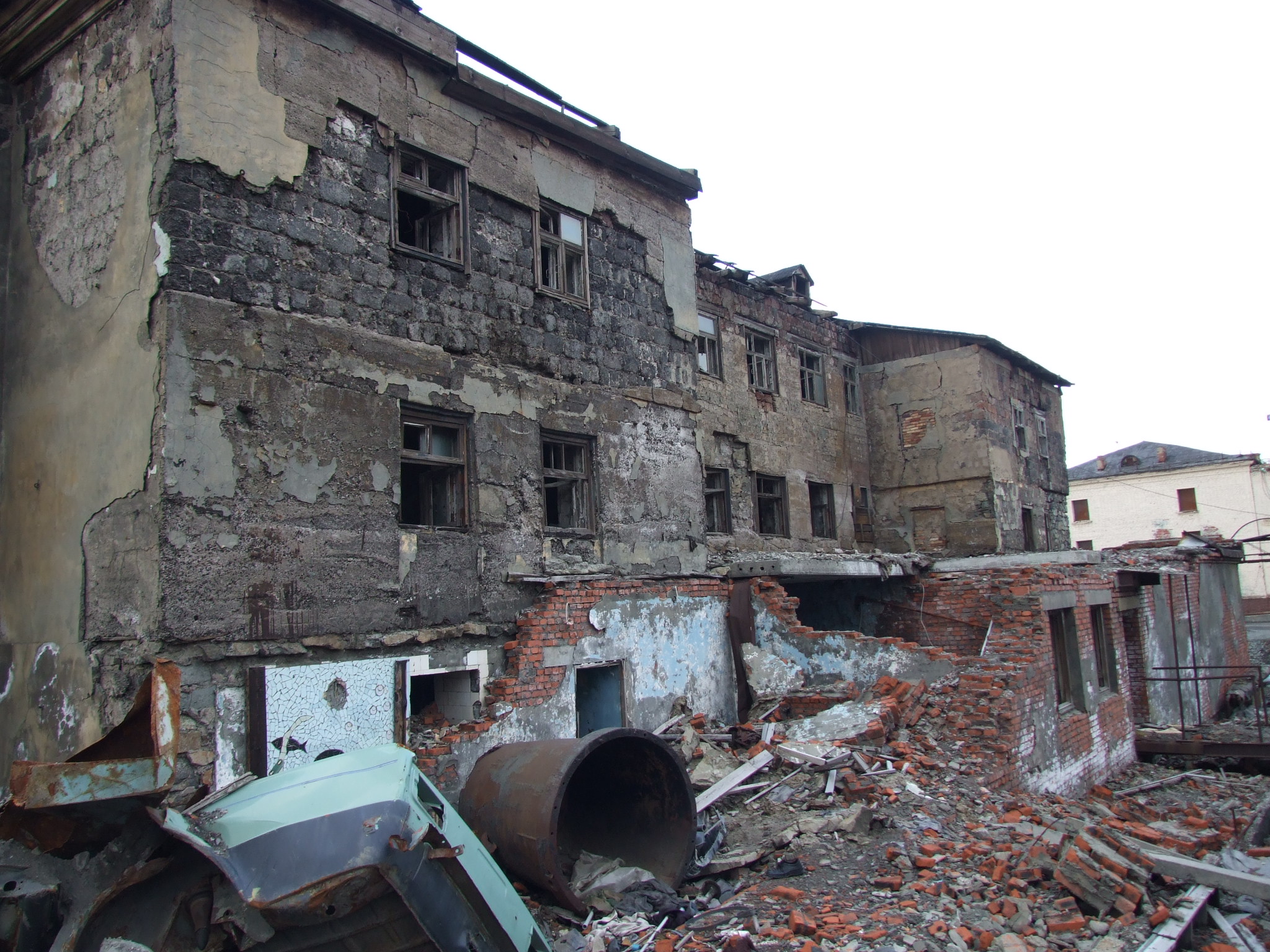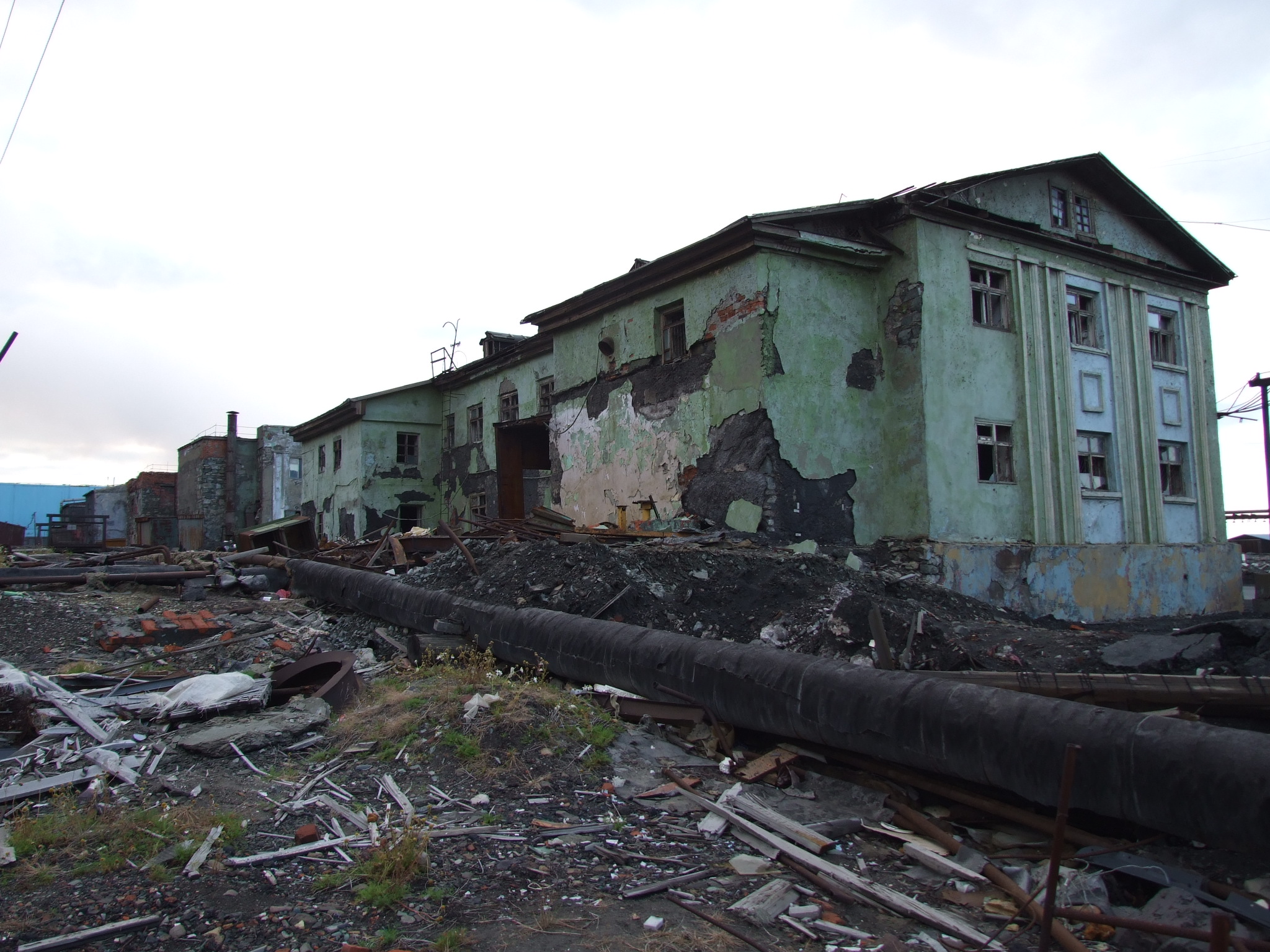 Про Норильск, я кажется, где-то тут уже писала. Там было реально страшно. Целые заброшеные микрорайоны, с многоэтажками, школами, детсадами. Но видели мы это все проездом, из окон машины, в основном. Только один раз удалось подойти поближе. И то, торопили и не дали как следует полазить