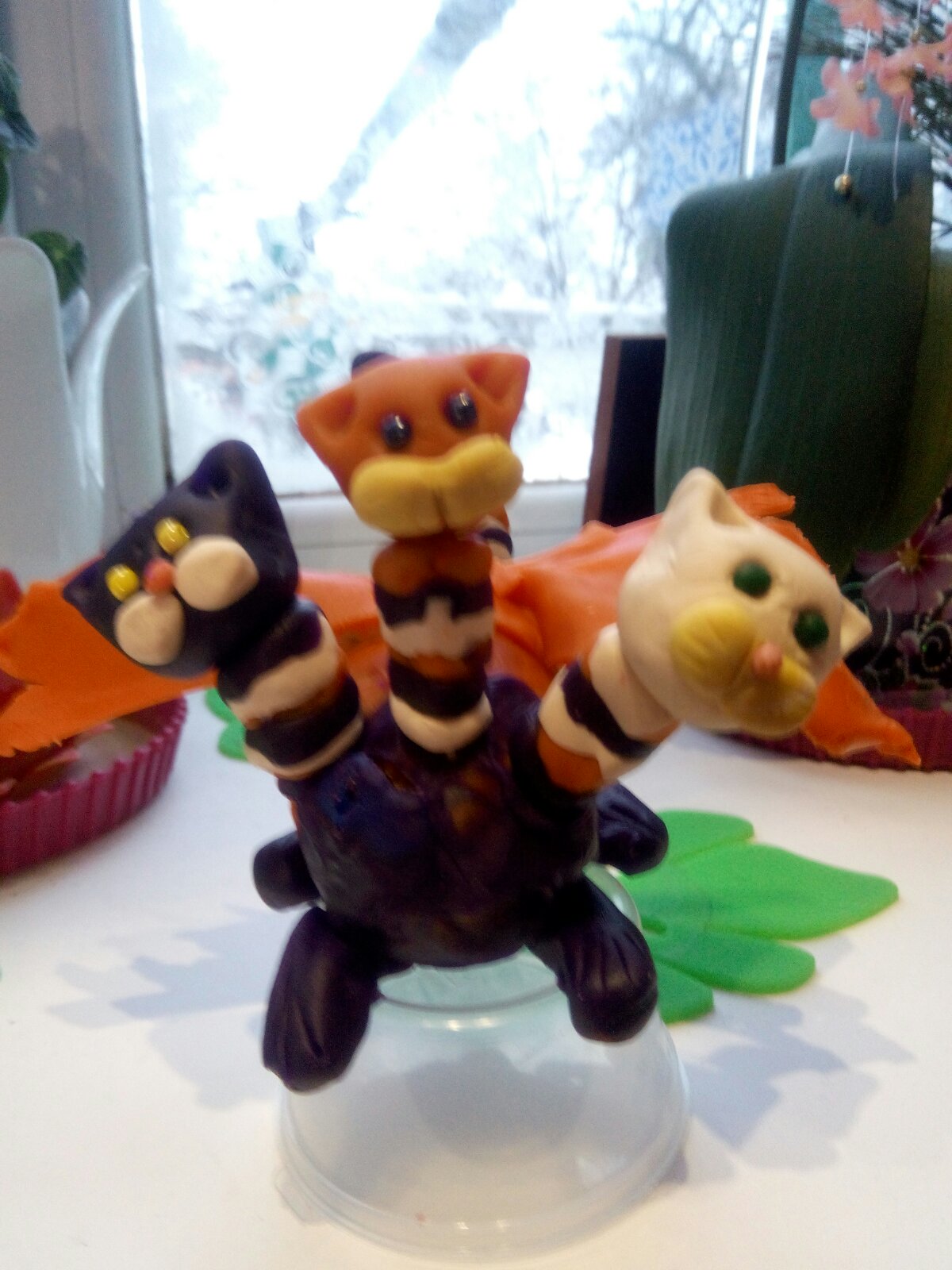 Ну то есть три кошачьи головы на одном туловище, и крылья же есть, да? Я никогда не умела толком лепить, поэтому мне очень нравятся такого типа поделки. А на самом деле это кто?