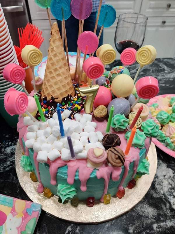 Дочка наверняка в восторге! Самое лучше в подобных тортах, это украшения - вкусняшки на любой вкус.
